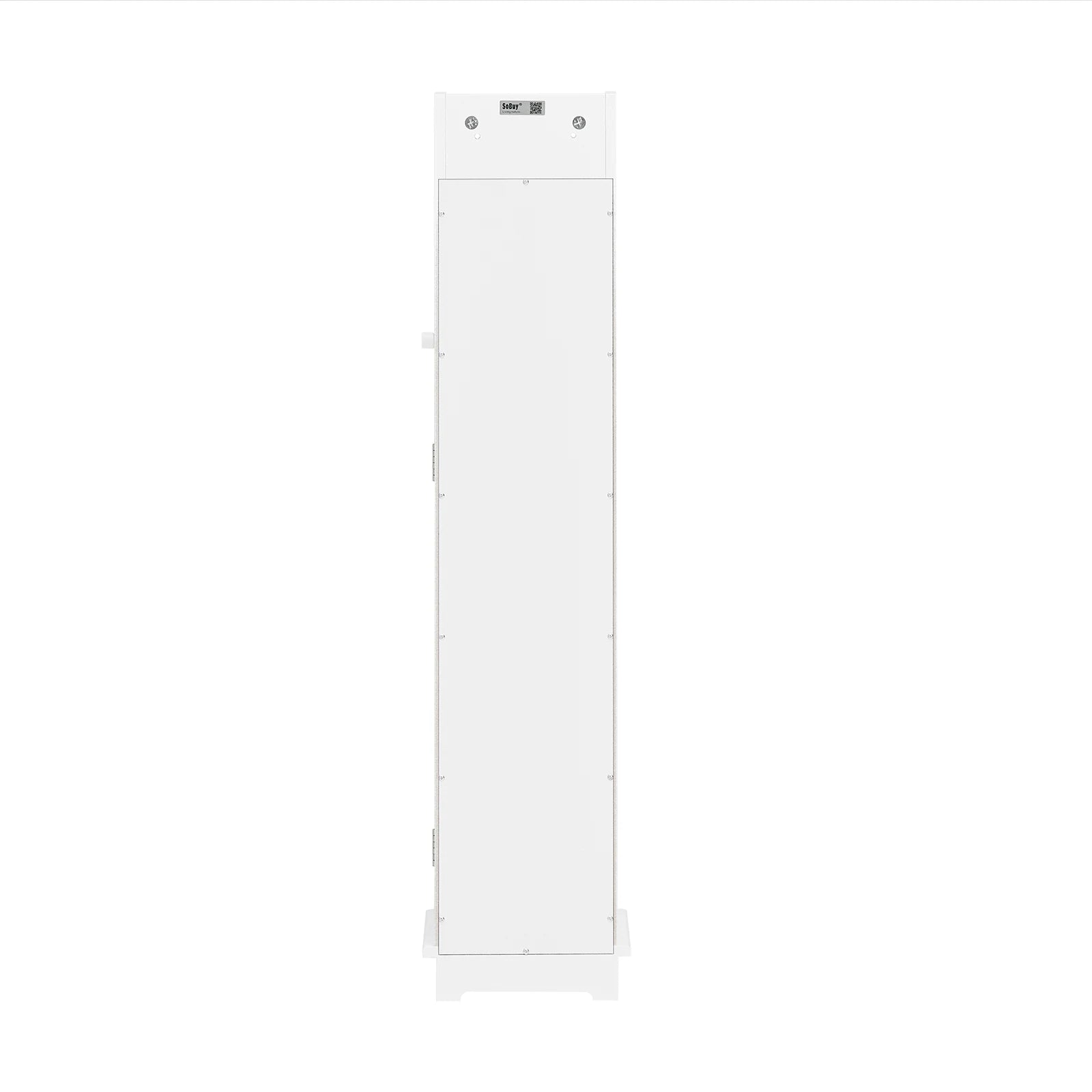 L'armoire de salle de bains ne se contente pas de rehausser le design, elle offre également un espace de rangement pour la brosse de toilette, les produits d'entretien ou le papier hygiénique.